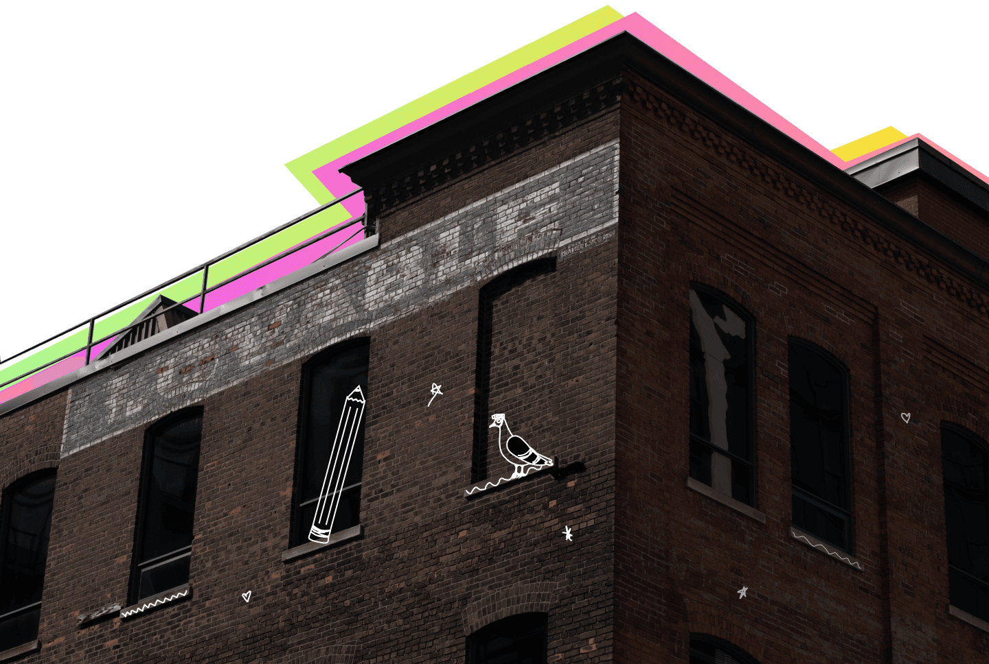 De nos jours, c’est une bande de créatifs, de stratèges et de passionnés de technologie qui occupent notre immeuble. Mais il y a 50 ans, s’y trouvait une manufacture de sous-vêtements pour femmes de la marque Lovable. Les textiles ont depuis longtemps déserté l’endroit, mais nous pensons que le symbole a toujours sa pertinence.